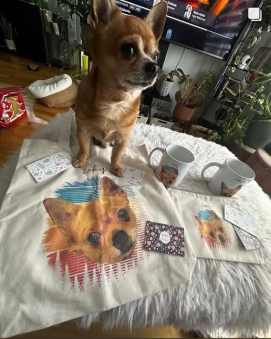 Bolso tote promocional cuenta Instagram en algodón orgánico retrato de animal en foto Idea promocional evento Woofest